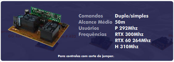 - Nas frequencias 292, 315, 325, 433,92Mhz